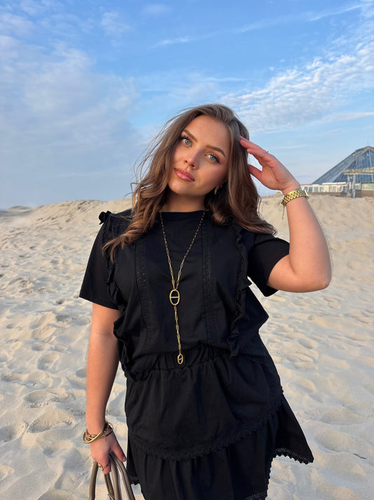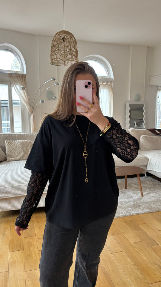 ÉpuiséTee-shirt dentelle - Noir