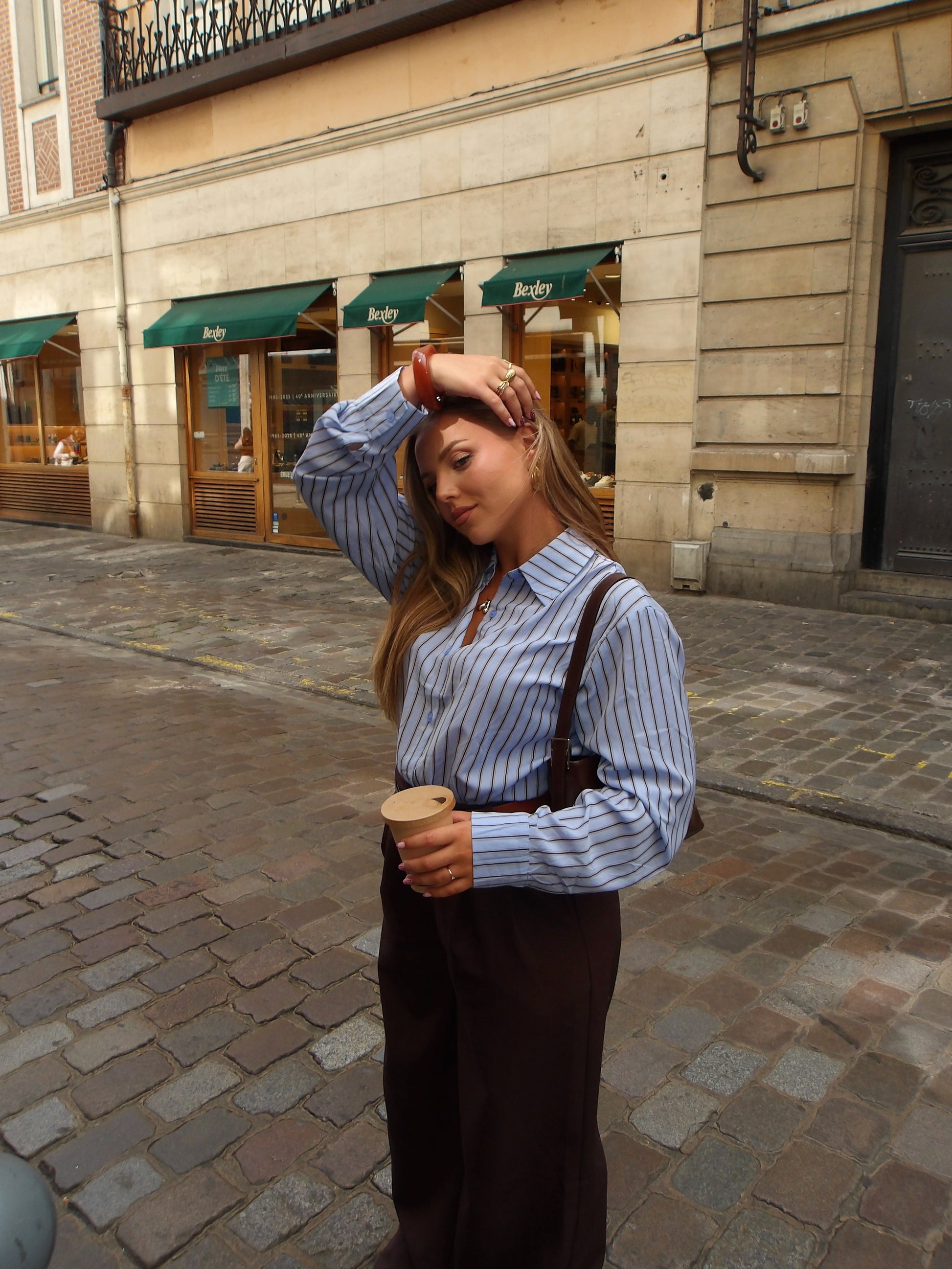 Chemise Rayée Bleu & Marron – Esprit Rentrée 📘