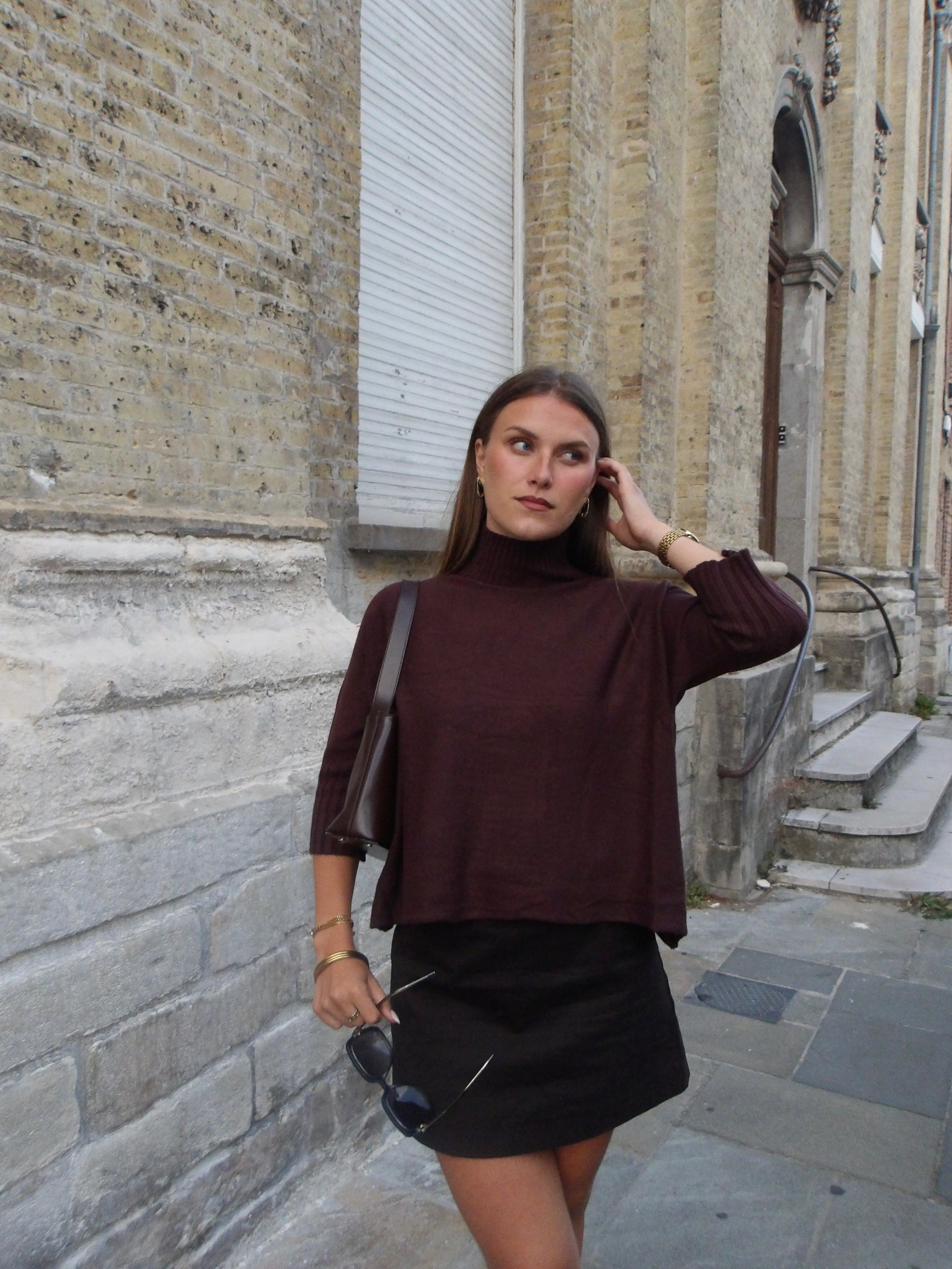 Coloris : Chocolat – une teinte profonde et chaleureuse, parfaite pour un look automnal sophistiqué