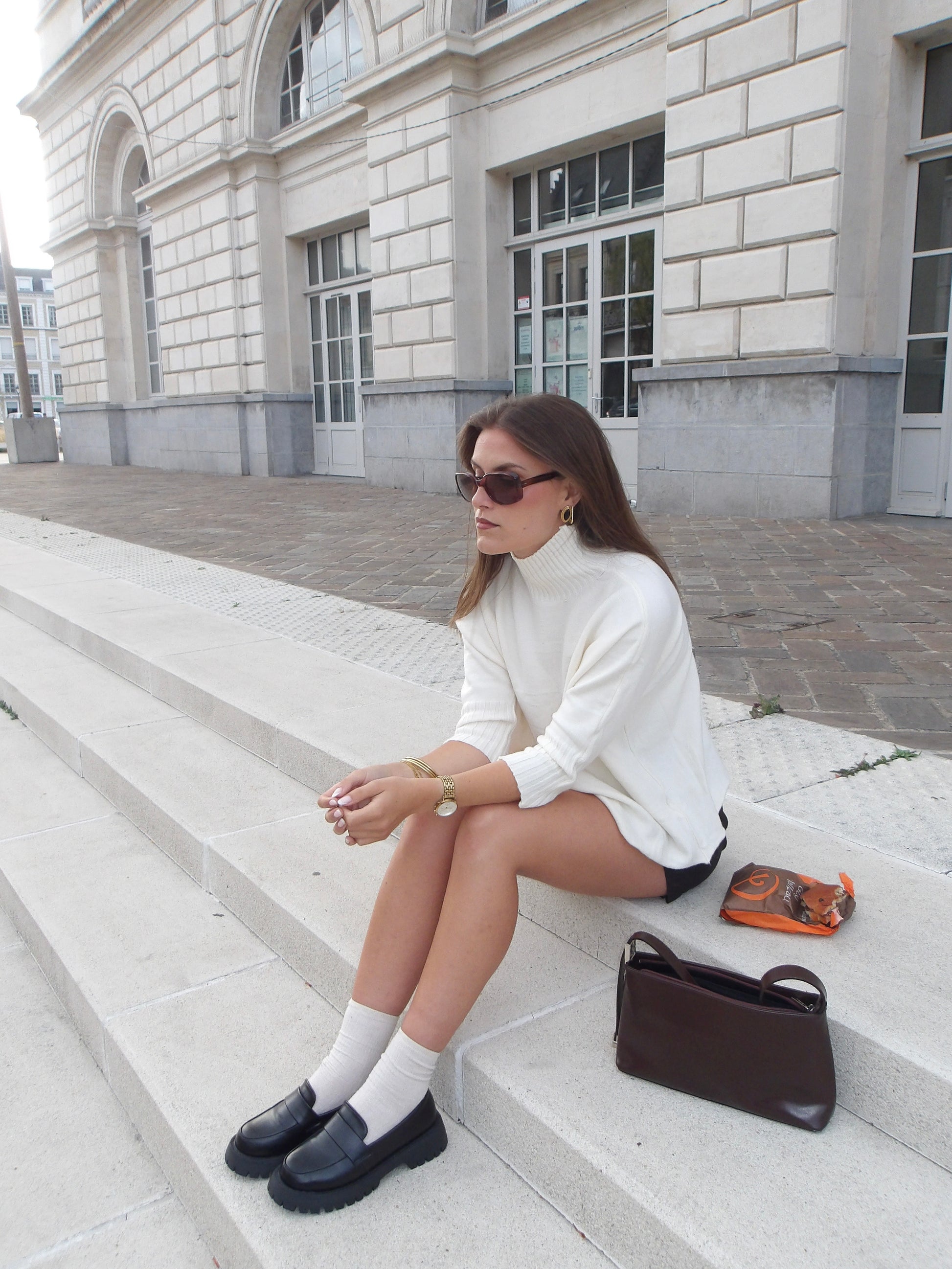 Pull Col Montant Manches 3/4 – Élégance Crème ✨