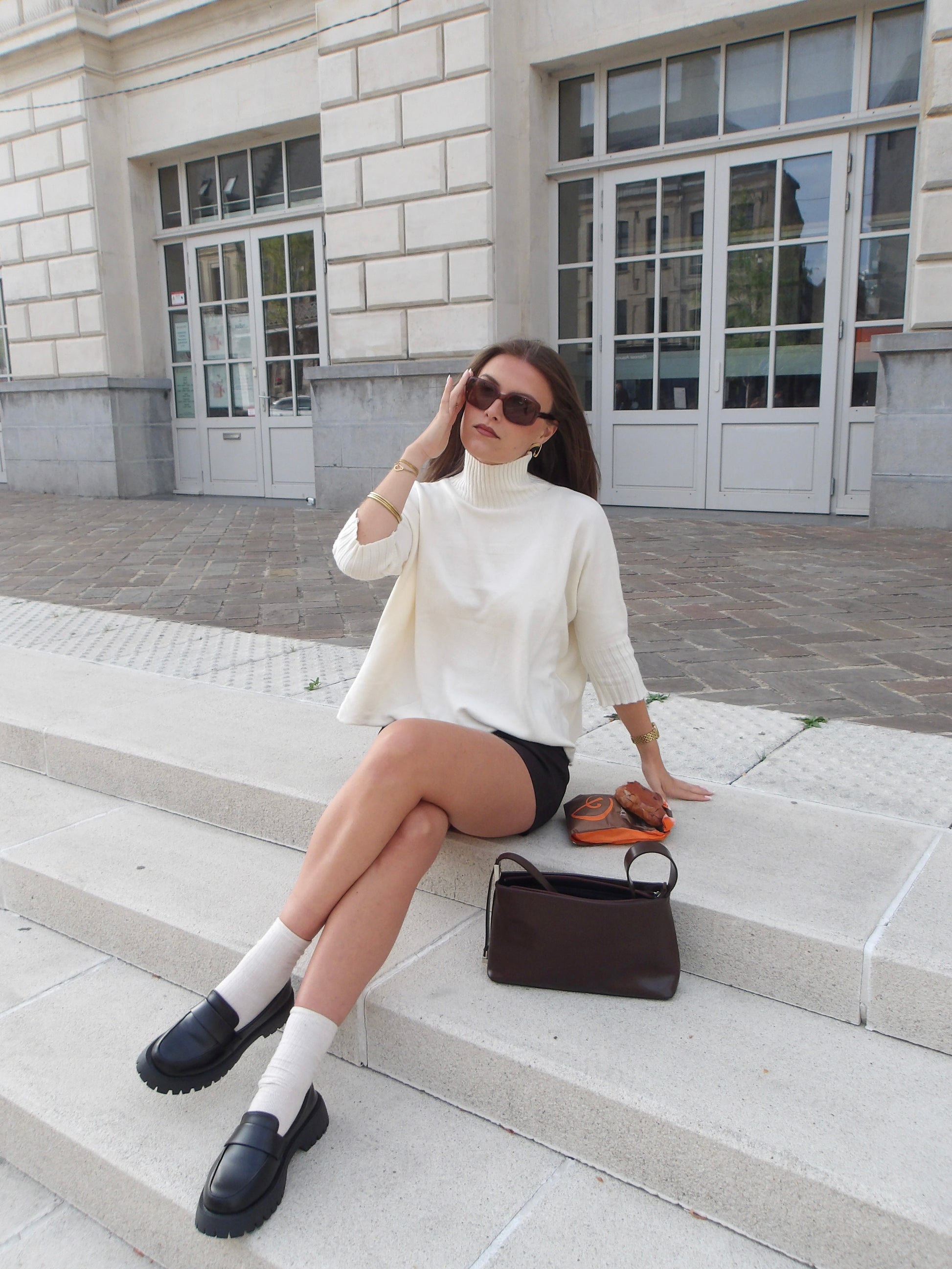 Détail : Pull col montant avec manches trois-quarts, coupe taille unique fluide et flatteuse. Un basique chic à porter seul ou accessoirisé
